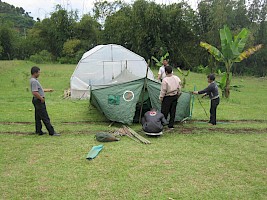 Peutingna Jaka, Raksa, jeung Galih geus marake piyama, geus siap rek sarare. Amang jeung Bibi tadi geus pamitan rek ka riungan, rek ngadoa jeung batur sakelompok.